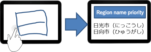 Ex.: When "日本@" (Japan@) is input with @ defined as a handwritten wildcard character
