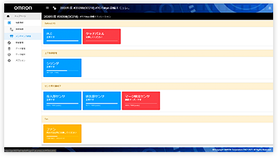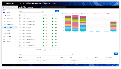 Displays the overall equipment effectiveness (OEE) and its components, Gantt charts, and the number of problems in the past week for each process. Scheduled maintenance information is provided for parts with life spans, etc., according to operation performance.