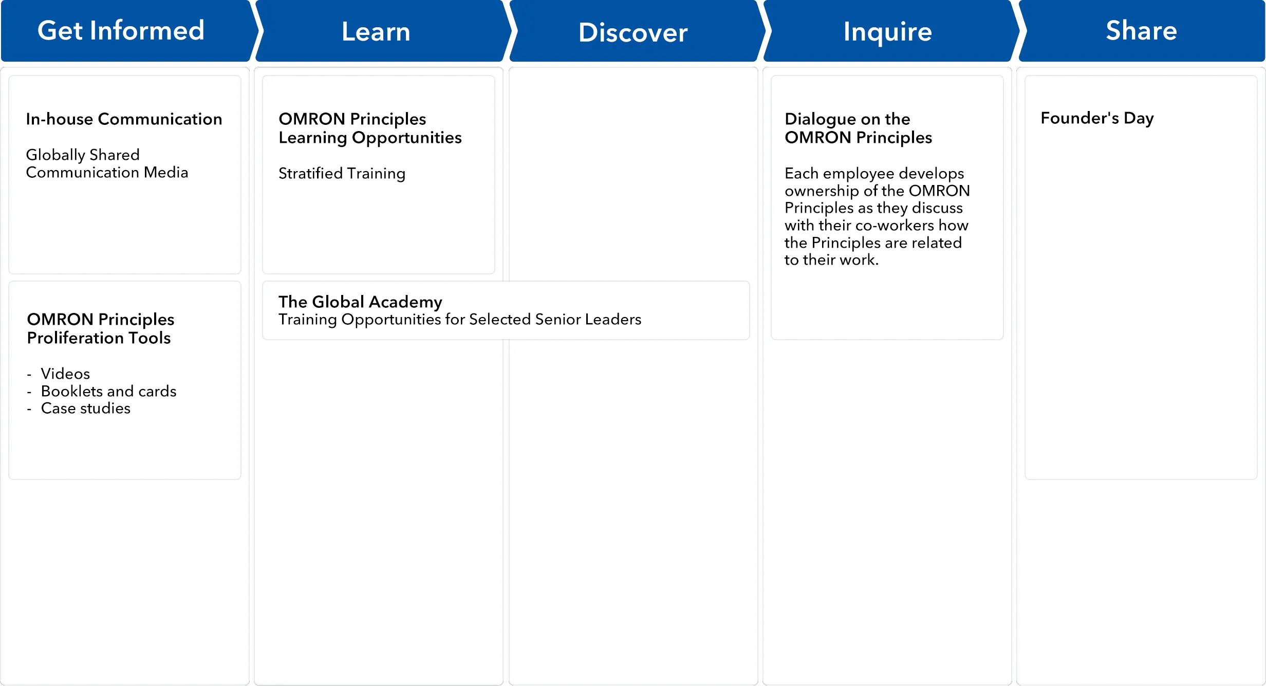 A global framework enabling all employees to actively engage in realizing the OMRON Principles.