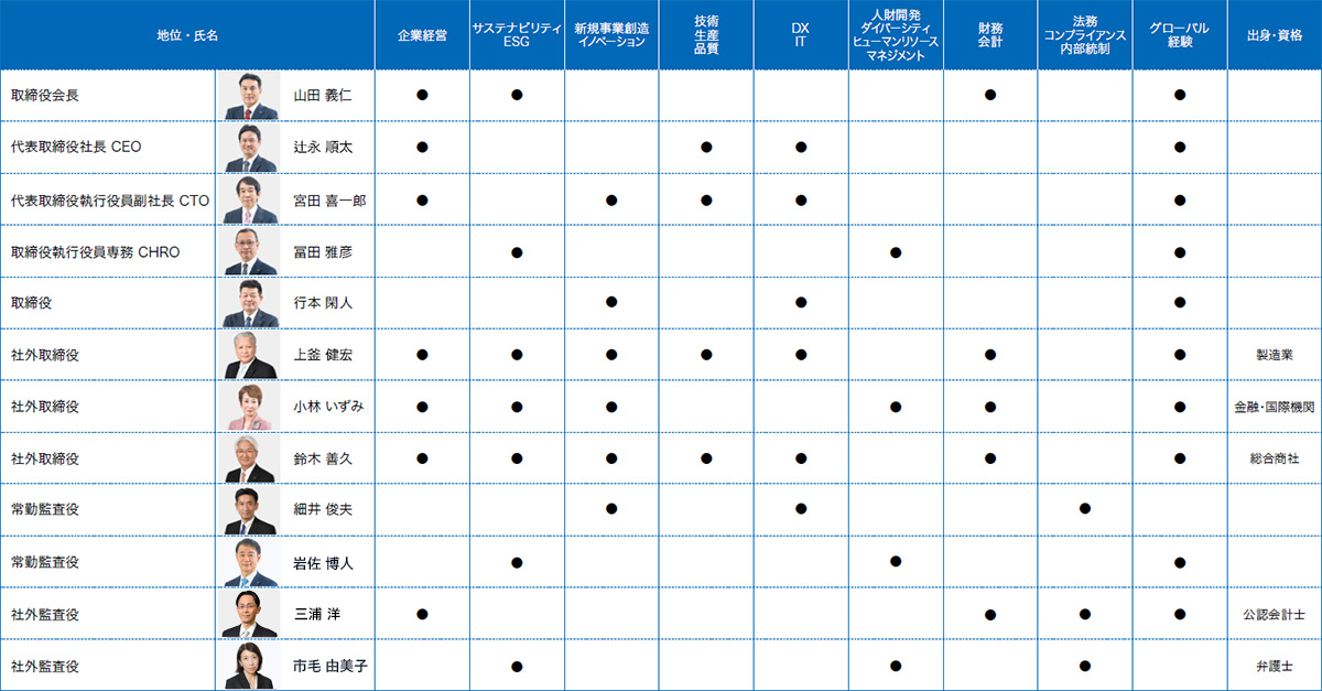 2025年度取締役・監査役のスキルマトリックスは以下の通りです。