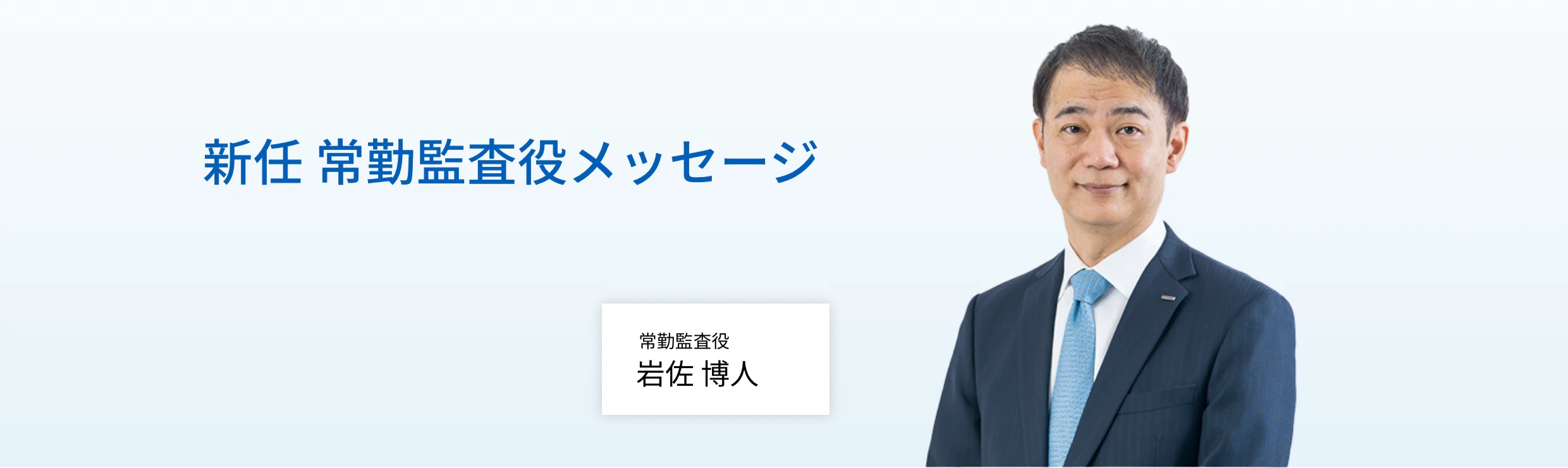 監査役に就任しました岩佐です。これまで取締役室長として、取締役会運営を含むコーポレートガバナンスの強化に尽力してまいりました。